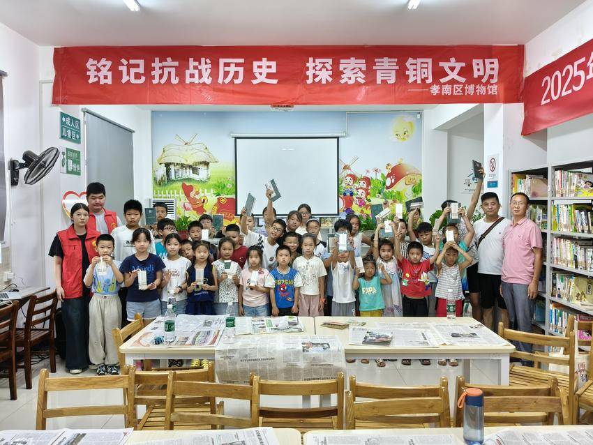 湖北日报客户端讯(通讯员邱倩)“把石膏倒进模具里,等它变硬后,一个‘青铜器’就诞生啦!超神奇!”8月26日,在孝南区毛陈镇图书馆内,刚体验完青铜器模拟铸造的小陈同学兴奋不已。当日,由孝南区博物馆带来的“铭记抗战历史,探索青铜文明”纪念活动,让40余名青少年在互动中既传承了红色基因,又触摸了千年文明。