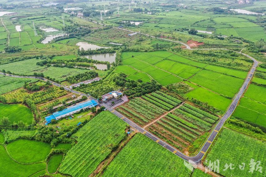 矿山公园至景墩农旅致富路是产业动脉,连点成线,示范带动,建成7.6公里产业园区路,美化亮化15.1公里镇村产业连接路,串联起湖北省农业科学院糯稻种植基地、沐辰果园等10余处农业产业基地。