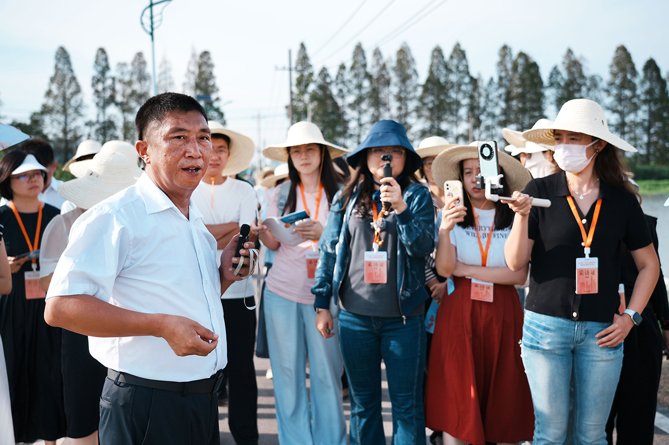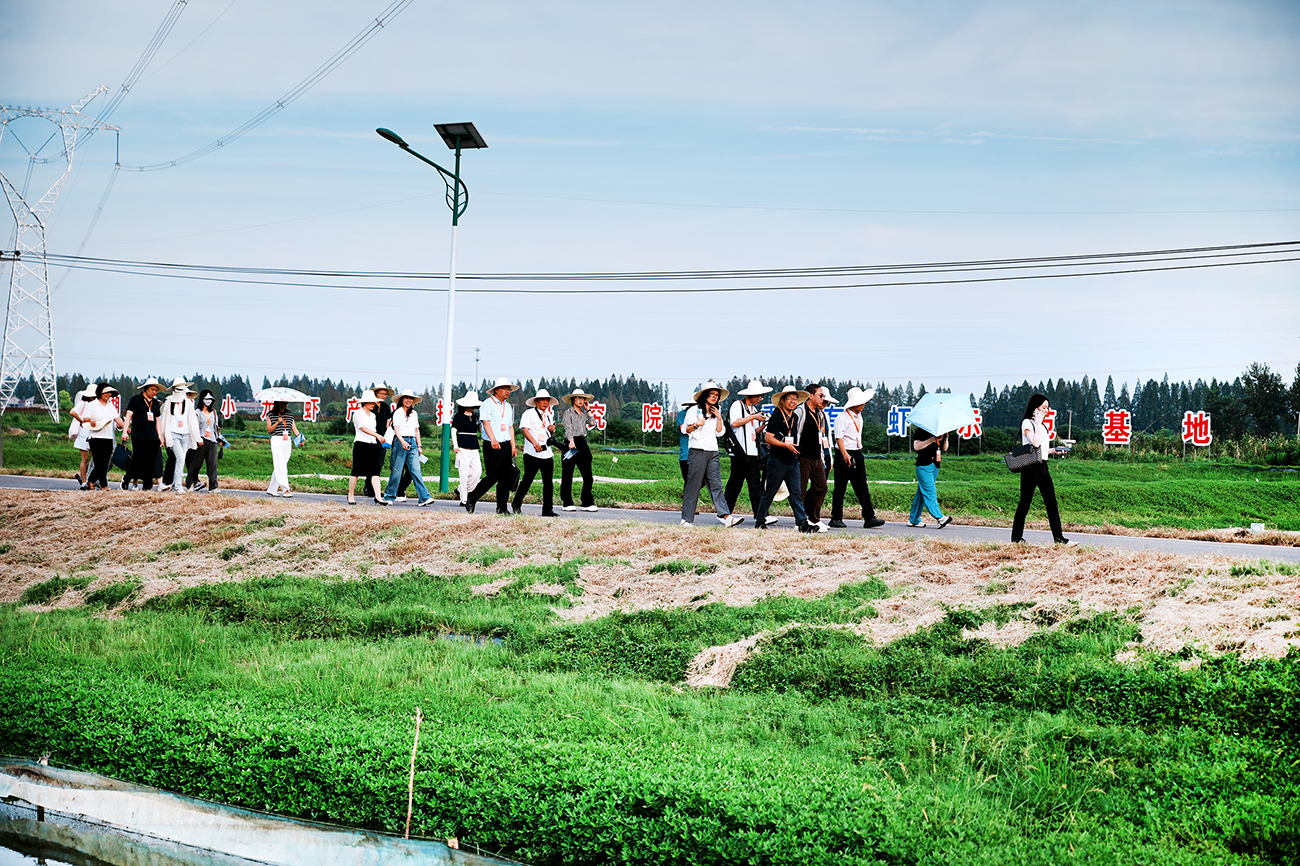 采访团在湖北潜网生态小龙虾产业园。