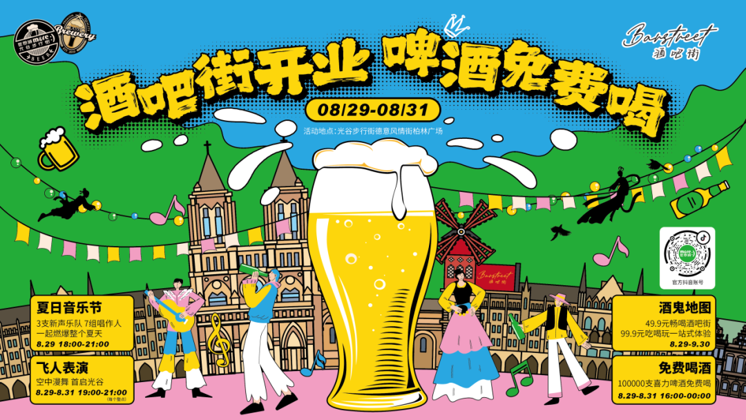 活动内容:七夕期间,光谷酒吧街即将开业,设有空中飞人表演、酒鬼打卡地图权益卡、酒水免费喝、夏日音乐节等活动,邀您共赴最好逛、最好玩、最好拍的欧式风情街区!