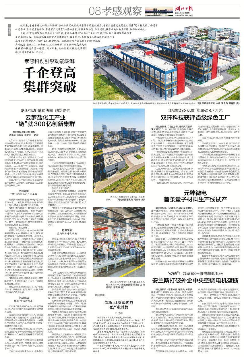 以葛化华祥为龙头,云梦盐化工产业园不仅孕育出300亿元的产业集群,更以创新为引擎,推动产业链向高端化、绿色化跃升。从工业副产气“变废为宝”到高纯溶剂达到“中国新纯度”,从突破“卡脖子”技术到布局氢能发电、固态电池等前沿领域——云梦盐化工的故事,正成为孝感乃至湖北县域经济创新驱动的生动注脚。