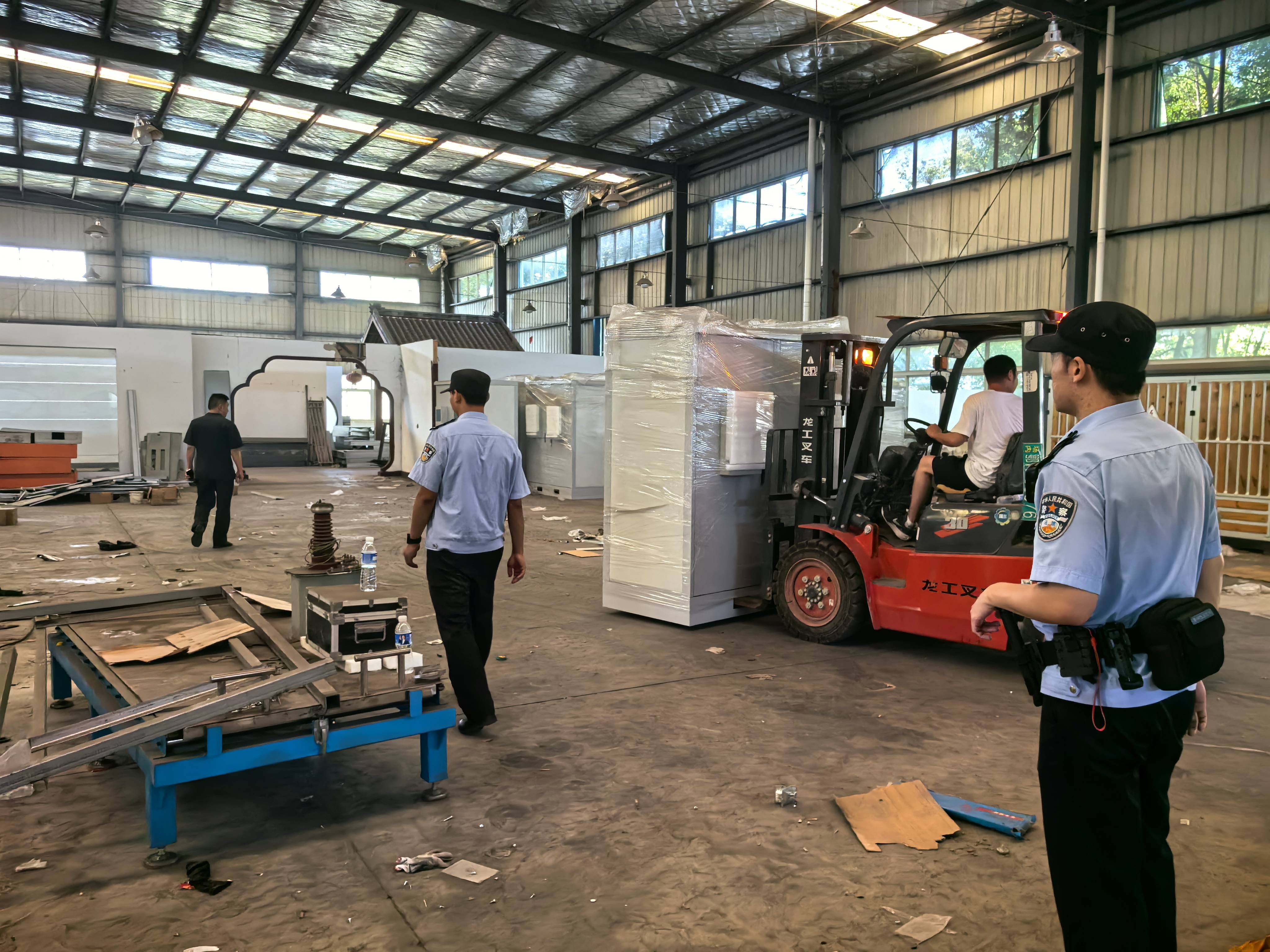 执行现场,干警执法记录仪全程开启,法警威严值守。执行人员一方面准备强制腾退,另一方面持续进行法律释明和情绪疏导,最终促成剩余租户主动配合搬离,厂房内设备物资全部有序迁出,最大限度避免了财产损失。