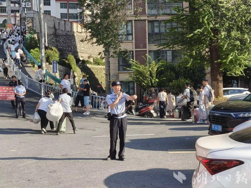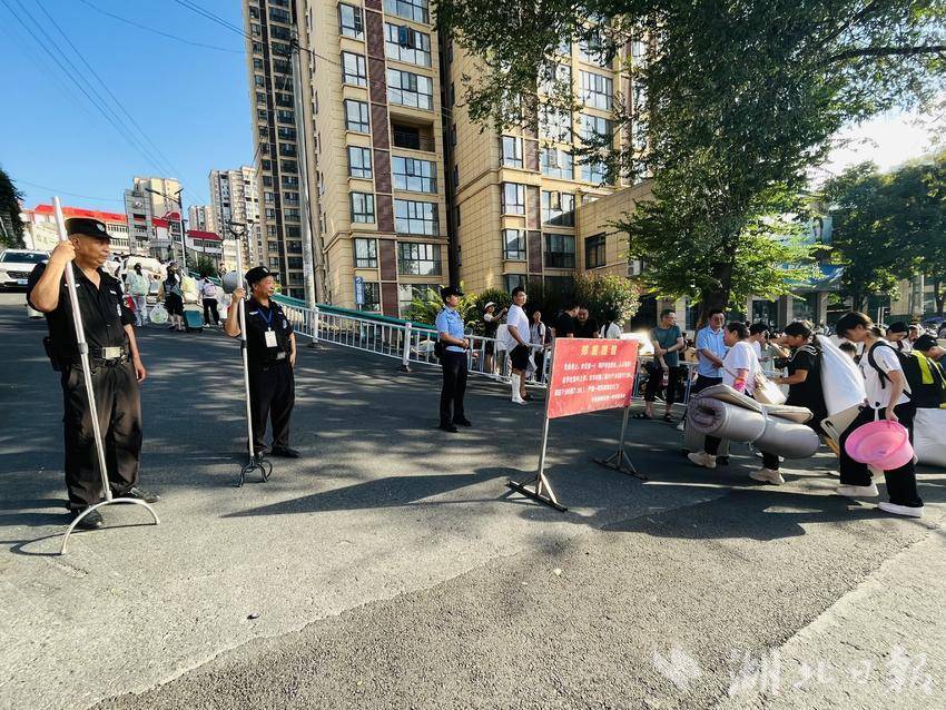 针对报到日校园周边车流、人流集中特点,保康一中提前联动属地交管、公安等部门,在入校红绿灯路口设置临时指引牌,组建“教师志愿者+保安+警察”协同疏导队伍,引导车辆、行人有序通行。同时,安全工作人员在新生报到现场不间断巡逻,排查人员密集区域隐患,筑牢安全防线。