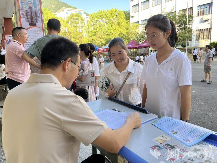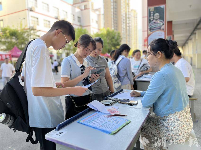 鹏志楼前,班主任团队提前布设新生报到处,现场有序进行核验录取通知书、收取相关材料、组建家校群、办理校园卡等入学办理工作,还针对性指导新生校园生活,确保新生适应高中校园生活。