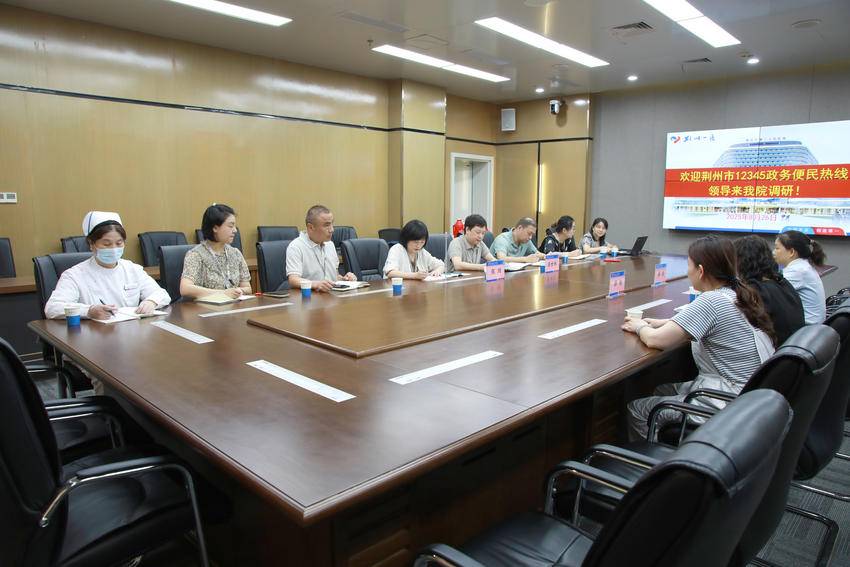 2025年8月26日上午,荆州一医接待荆州市12345政务服务便民热线调研组一行,专题调研医院12345热线投诉处置工作。医院纪委书记张玥、副院长屈世林及相关部门负责人陪同调研并参加座谈。
