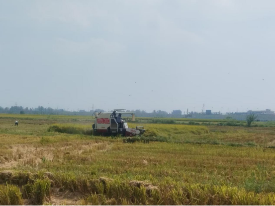 走进邵楼村的农田,多台联合收割机轰鸣作业,金色稻浪在机械穿梭中逐渐“变身”成颗粒饱满的稻谷,秸秆则被即时粉碎还田,实现资源循环利用。村民老邵站在田埂上,看着装满稻谷的农用车,脸上满是笑容,田间一幅喜人的秋收图景。