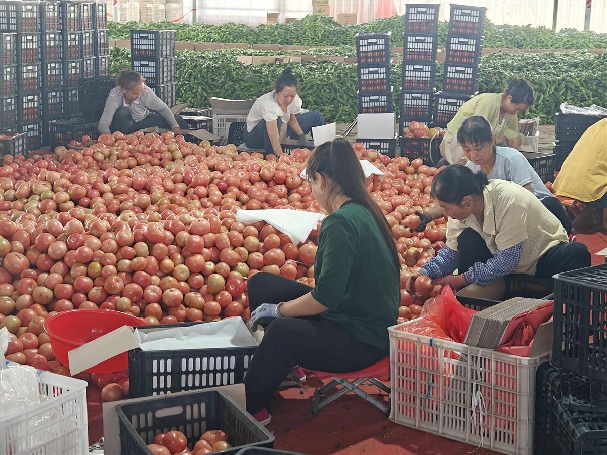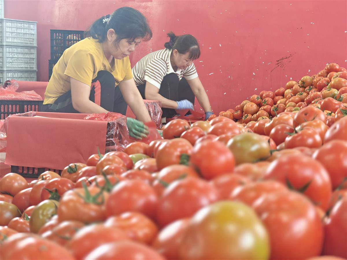 700米外,另一处收货点大棚里,云南来的杨小凤和14个姐妹围成一圈忙着给红艳的番茄打包,这是她连续第四年来长阳。“我们一共有15位女工和4位男工。”杨小凤说,来之前合作社就与他们确认时间和人数,这次来的女工年龄从27岁到60岁不等,都是包装的好手。到10月初,他们也将像“候鸟”一样再“飞”回云南。