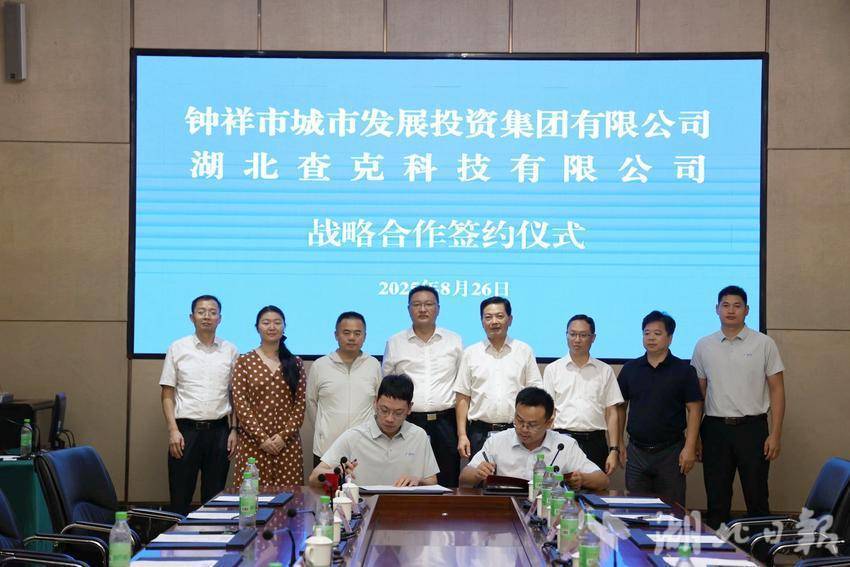 湖北日报客户端讯(通讯员李璐、王思雨)8月26日,钟祥市城市发展投资集团有限公司与湖北查克科技有限责任公司正式签署《战略合作框架协议》。钟祥市城发集团主要负责同志与湖北查克科技有限责任公司总经理杨越代表双方签约。