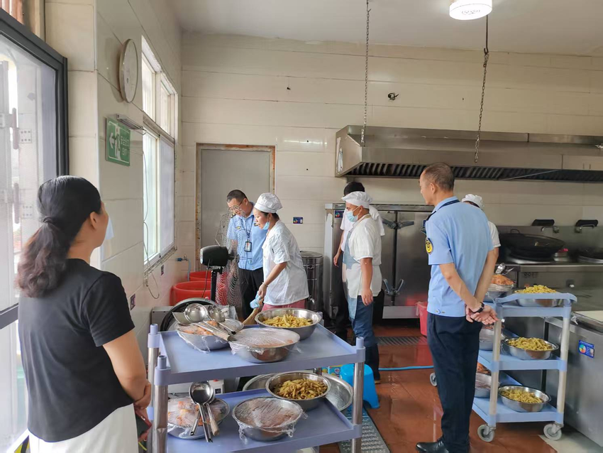 此次检查重点围绕三个方面开展细致排查:一是严审食材采购 “源头关”。检查进货渠道是否正规、是否严格落实了索证索票管理制度;二是细查食堂管理 “规范关”。重点核验食堂食品经营许可证、从业人员健康证是否齐全有效,晨检记录是否真实完整,食品加工操作是否规范及食品留样是否合规;三是严控食品储存 “环境关”。仔细查看食品储存环境是否达标,相关储存设施设备是否有定期清洗消毒、维修保养。