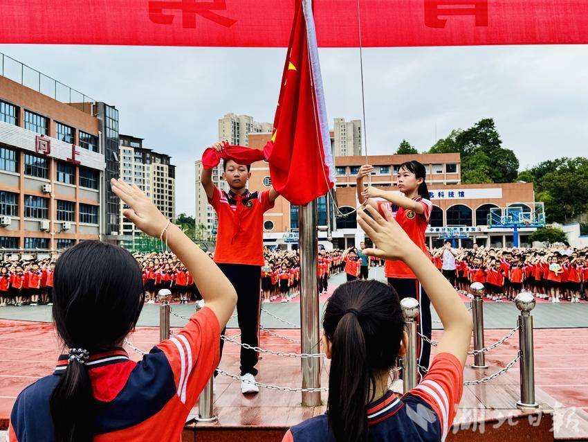 湖北日报客户端讯(通讯员梁欣、朱曲波)升旗、国旗下演讲、防诈课堂、抗战故事分享……9月1日上午,咸宁市实验小学通过一场多维立体的“开学第一课”,让爱国主义与安全意识深植学生心中。