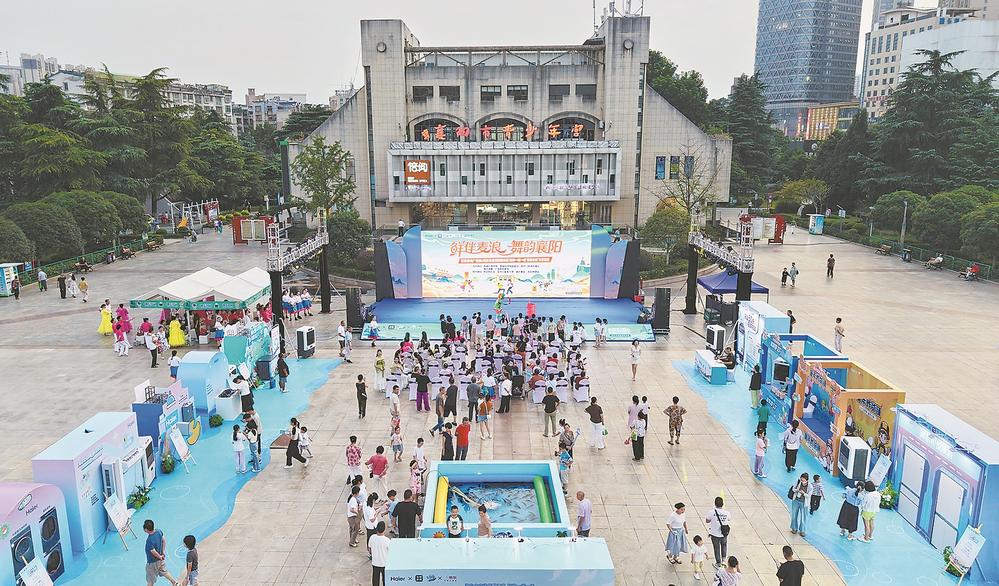 8月30日,樊城区组织社区与商户携手市住新局在人民广场开展今夏“商户联盟”消费季活动。本次活动整合文艺表演、趣味挑战、美食体验与互动游戏于一体,旨在打造一场融合文化、美食、娱乐与消费的夏日嘉年华。(来源:襄阳日报 陈莹 摄)