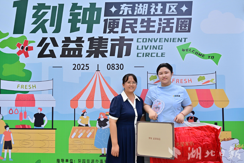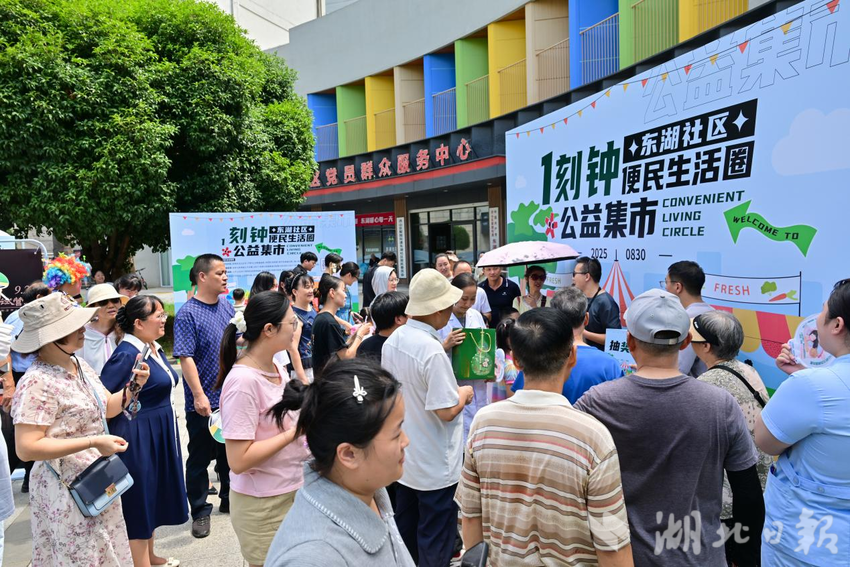 湖北日报客户端讯(通讯员肖满)8月30日,武汉市洪山区东湖社区党员群众服务中心前人潮涌动、气氛热烈。由梨园街道办事处指导、东湖社区主办、湖北乐享洪福信息技术有限公司承办、梨园街道商会协办的“一刻钟便民生活圈”公益集市正式启动。活动以“一刻钟服务圈,东湖暖心每一天”“东湖一刻钟,生活好轻松”为主题,整合便民服务、商户互动与趣味活动,让居民在家门口享受“零距离”暖心体验。