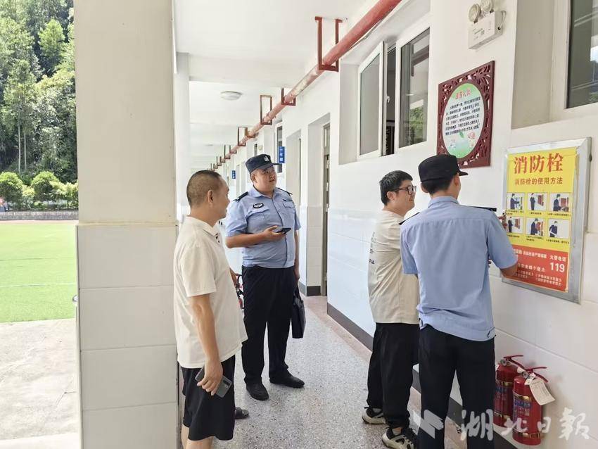 湖北日报客户端讯(通讯员覃敏)为确保新学期学校安全平稳开学,营造和谐稳定的校园环境,鹤峰县中营镇平安办近日联合派出所、司法所、市场监督管理所、供电所、卫生院等多个部门组成专项检查组,共同开展校园周边安全大检查行动。