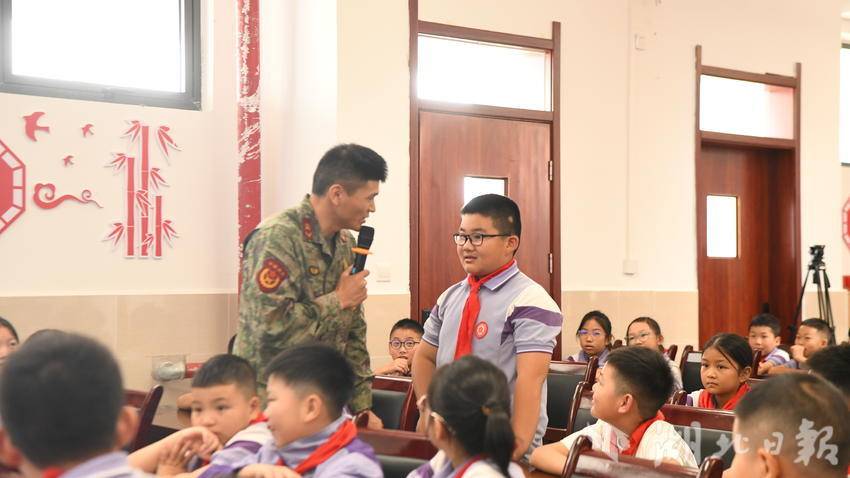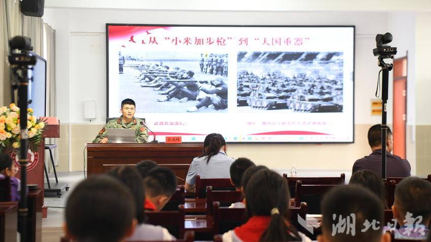 抗战胜利80周年之际,学校的“开学第一课”聚焦家国情怀:课堂上,工作人员用生动的图片和视频资料,既讲述我国国防力量的蓬勃发展,也追忆革命先辈的英勇事迹。同学们专注聆听、踊跃互动,在问答环节中加深对历史的认知与对家国的热爱。