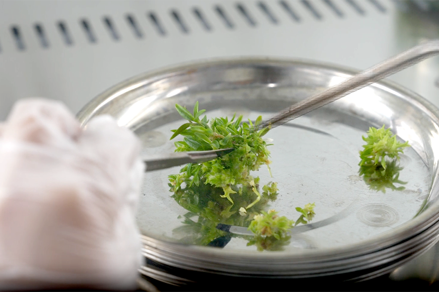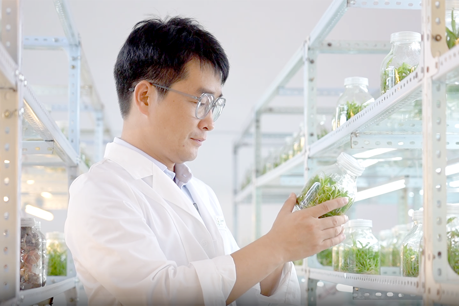 实验室内,恒温环境下,数万瓶珍稀药材克隆苗茁壮生长。通过植物克隆技术,陈小野的团队成功攻克了金钗石斛、杜鹃兰等10余种大别山道地药材的繁育难题。如今,这座扎根乡土的“中药材兵工厂”已马力全开,以中药材良种“1+N”,即1个研发中心加N个育种基地,发展500多亩育种大棚,年育良种6000万株,技术领先全国。