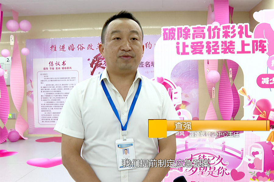 县婚姻登记中心主任查强:我们提前制定应急预案,确保各项工作有序推进。现场宣传婚姻新规和“全国通办”新政策。为新人免费提供专业的家庭辅导和律师咨询讲解等服务,引导他们自觉抵制婚俗陋习等不良社会风气。
