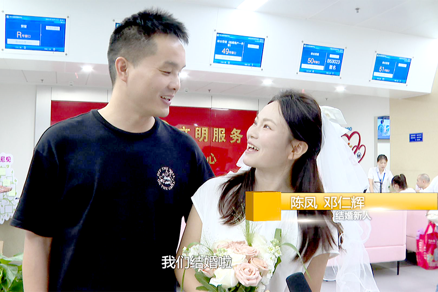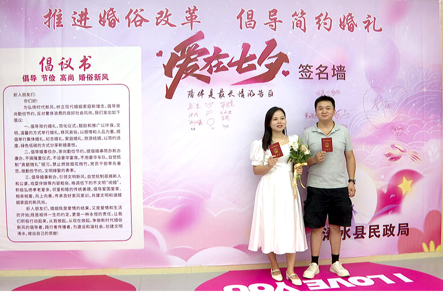 结婚新人陈凤、邓仁辉:今天是七夕佳节,在这个特别的日子,我们结婚啦。感谢浠水县婚姻登记中心所有工作人员的热情服务,让今天这个佳节充满了不同的意义。