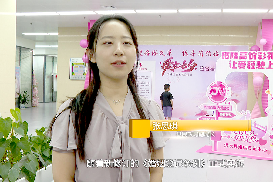 县民政局副局长张思琪:随着新修订的《婚姻登记条例》正式实施,婚姻登记不再需要户口簿,实现“全国通办”,我们民政部门始终秉承着“民政为民、民政爱民”的工作理念,主动贴近人民群众,力所能及为群众解决实际问题,让人民群众感受到我们的服务既有速度又有温度。