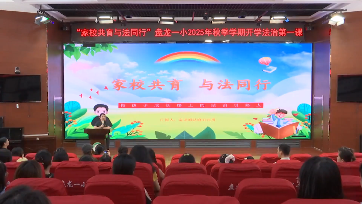 9月1日,盘龙城经济开发区第一小学开展2025年秋季学期开学“法治第一课”活动。活动中,来自盘龙城人民法庭的法官助理刘亚男以“家校共育 与法同行”为主题,为在场家长和学生代表深入浅出地讲解了义务教育法、校园安全、网络安全以及未成年人保护法等知识。