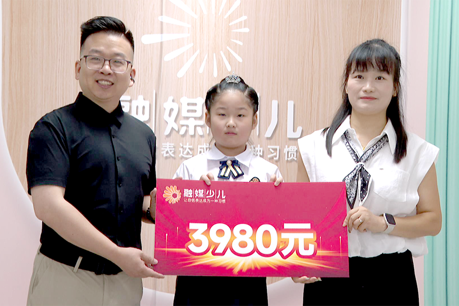 最好的技巧源于快乐,最高的标准来自趣味。为鼓励王馨玥继续在语言道路上前行,浠水融媒少儿培训学校特别奖励她价值3980元的口才课程。每个孩子都是天生的语言魔法师,融媒少儿正助力每一个多彩的梦想响亮绽放!