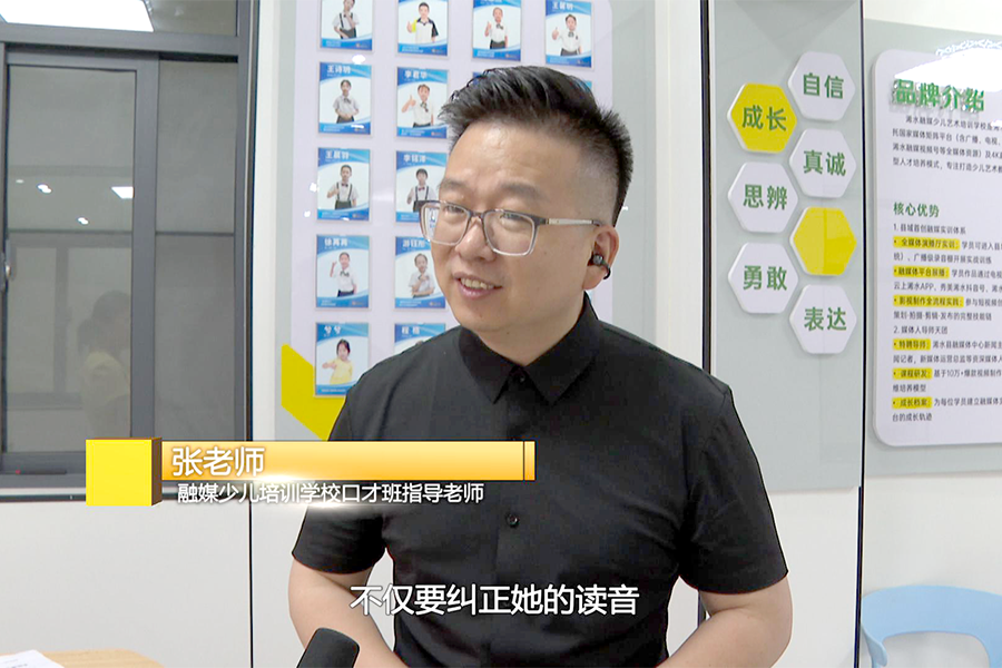 融媒少儿培训学校口才班指导老师张老师:我们的训练不仅要纠正她的读音,更重要的是引导她去“看见”课文里面的画面。让语言有颜色,让文字有温度,这让她的朗读格外生动、有感染力。