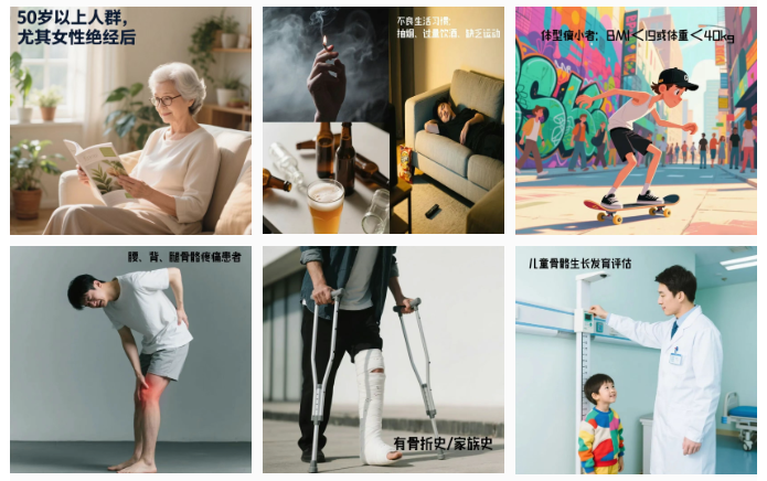 3. 长期缺乏运动或营养不良者:钙、维生素D摄入不足。