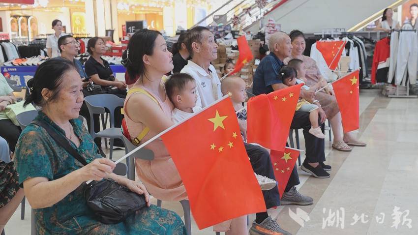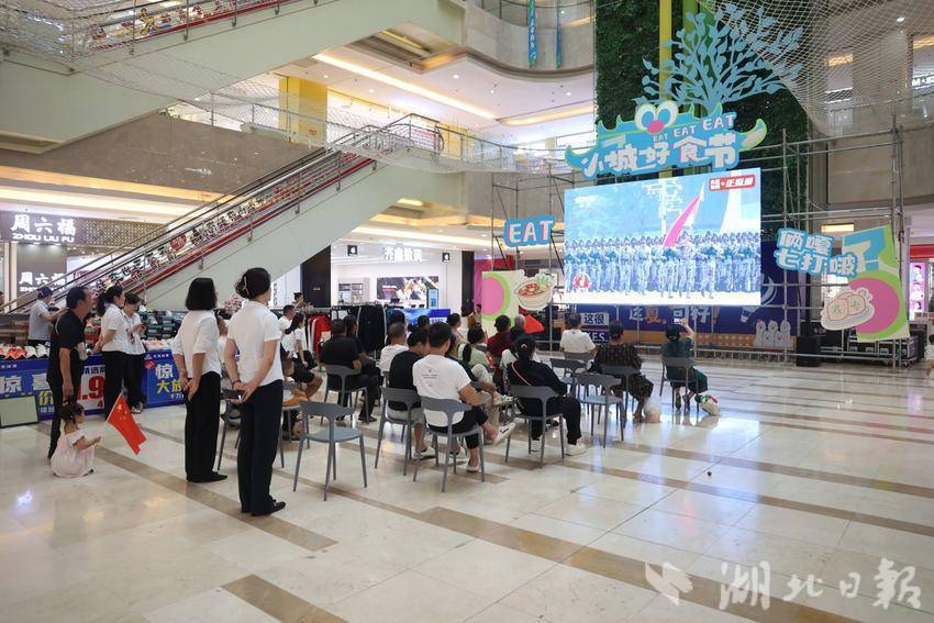 湖北日报客户端讯(通讯员何志琛)9月3日上午9时,在钟祥市中百广场巨型屏幕前,商场工作人员与数十位市民全神贯注地观看纪念中国人民抗日战争暨世界反法西斯战争胜利80周年大会直播,共同见证祖国荣耀时刻。