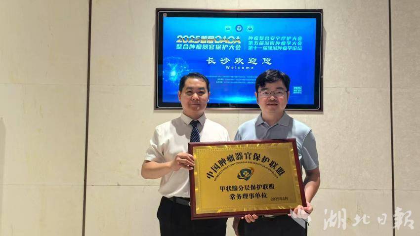 湖北日报客户端讯(通讯员李学刚、李娟)在近日长沙召开的“2025首届CACA整合肿瘤器官保护大会”上,“中国肿瘤器官保护联盟—甲状腺分层保护联盟”正式成立。汉川市人民医院获任为该联盟常务理事单位,标志着其甲状腺疾病诊疗能力获得国家级认可。