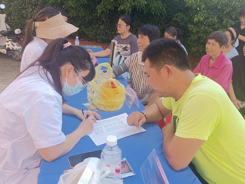 活动现场,社区巾帼志愿者引导居民有序排队,并发放健康宣传手册。医护工作人员为居民免费测量血糖、血压,针对血压血糖异常的居民,现场提供日常饮食与生活习惯方面的健康建议。