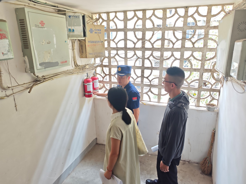 答疑结束后,消防监督员随即与街道工作人员一同深入辖区老旧小区,以“手把手教、点对点帮”的方式开展实操指导。在小区楼道内,消防监督员现场示范如何判断灭火器是否过期、消火栓水压是否达标等关键操作。针对部分小区存在的杂物堵塞消防通道、私拉乱接电气线路等常见隐患,消防监督员现场讲解整改要求和优化方案,并提醒排查人员要重点关注独居老人家庭、楼道应急照明等关键部位,确保隐患排查全面覆盖、不留死角。