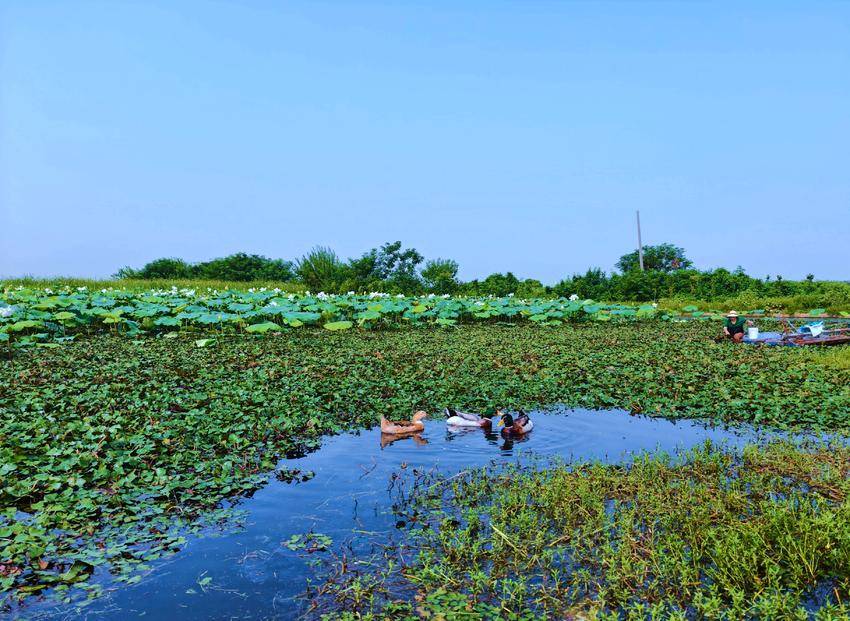 朱湖区域水系发达,南有沦河,北有府河,水域面积1万多亩,曾经是“朱湖红菱”野外遍生之地。近年来,通过实施全域国土综合整治项目建设,朱湖河湖沟渠塘水系畅通,环境优化,为发展红菱角提供了优越条件。2025年,“朱湖红菱”种植面积达13.2万平方米,总产可达40万斤,通过加工、转化、直销等相关产值可达300余万元。