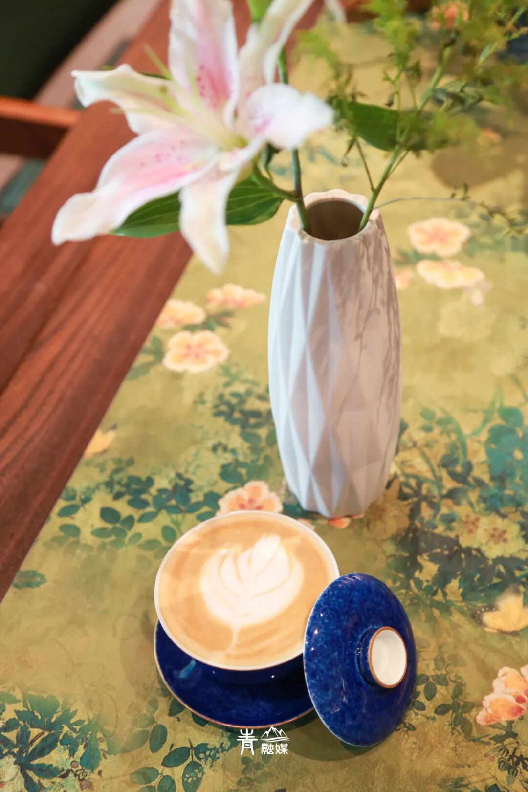 它最初是一家名为「知茶」的生活美学茶馆,不久前拓宽经营版图,新增了咖啡板块。因为开在青山,所以取名为「青上咖啡」。