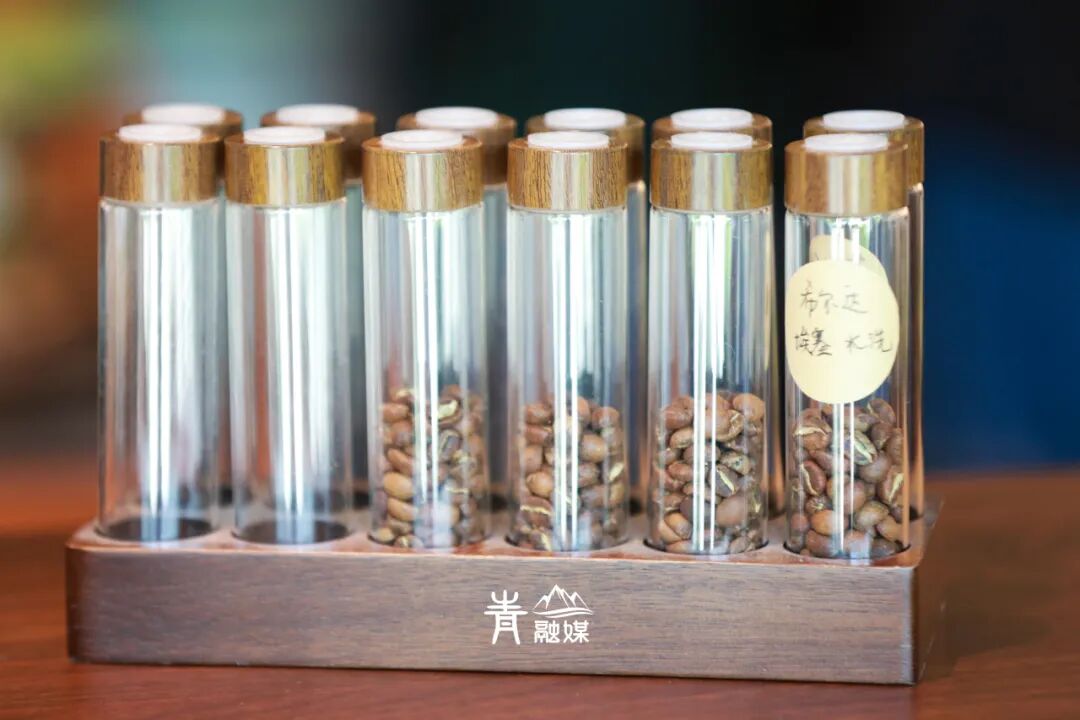 譬如用木塞试管容纳咖啡豆,有一种实验的科技感。用茶则盛放上秤的咖啡豆,居然刚刚好。