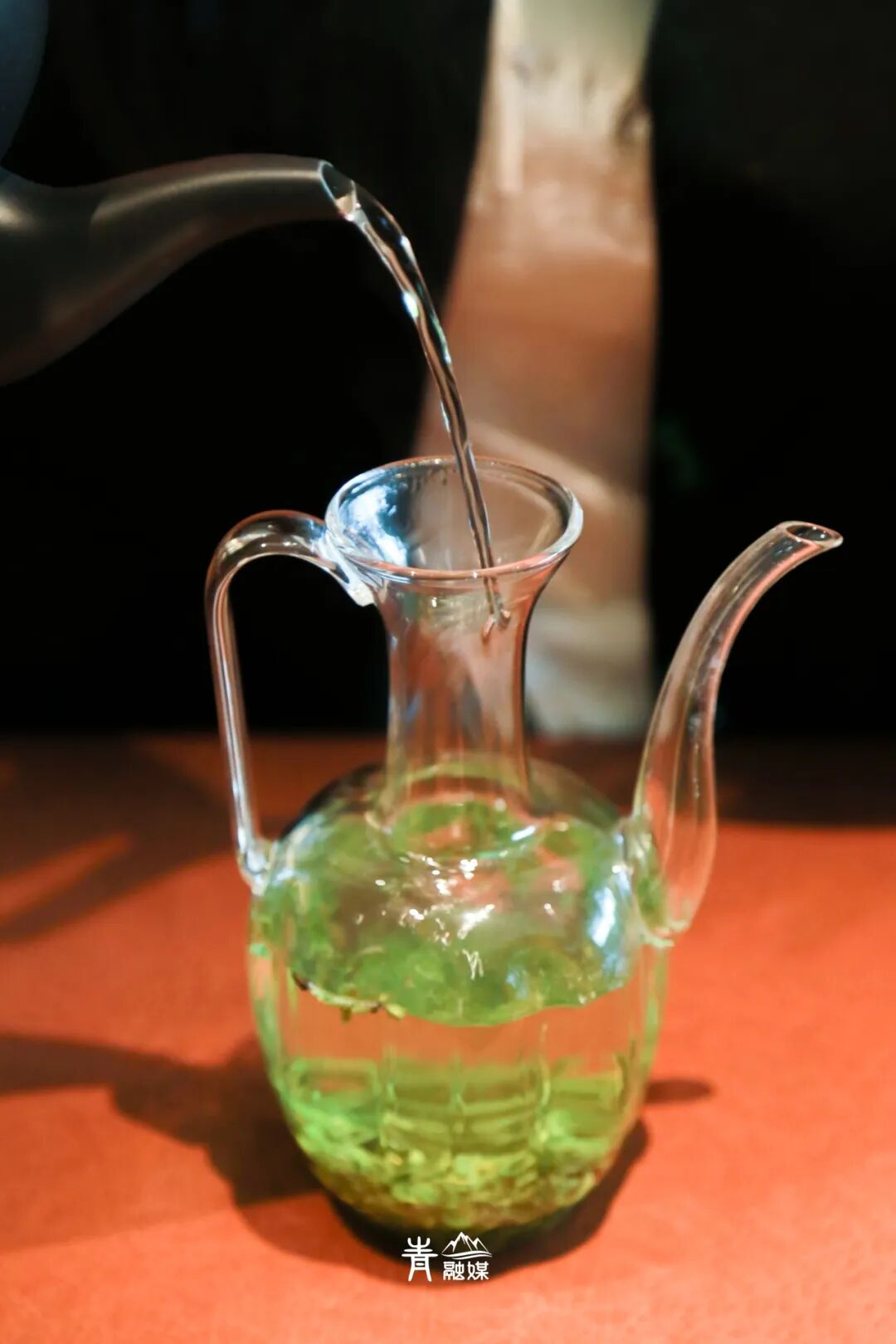 逆时针注水旋转,过程中可观察到碧绿的干茶缓慢湿润舒展的过程,梦回春日茶山的清新自然。