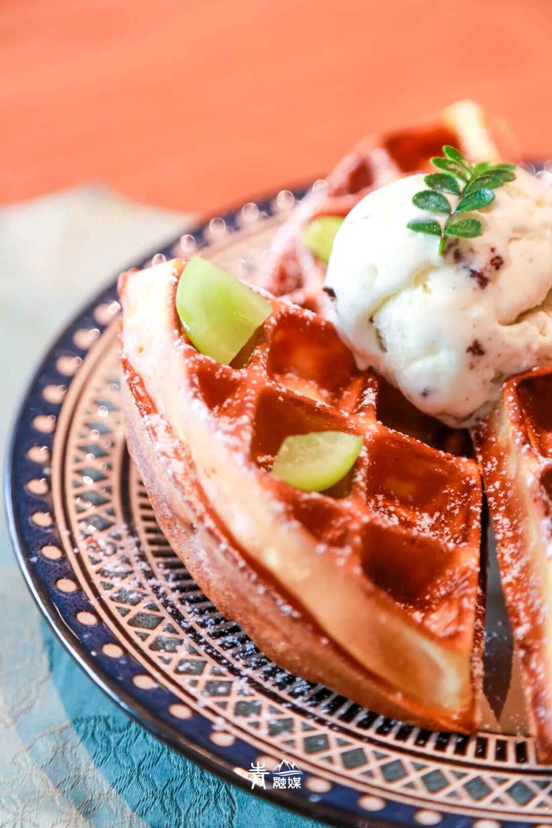 「原味华夫饼」是顶配,经典的味道最好吃。还未上桌就能闻到面团经过高温烤制产生的香气,烤得焦脆香浓。
