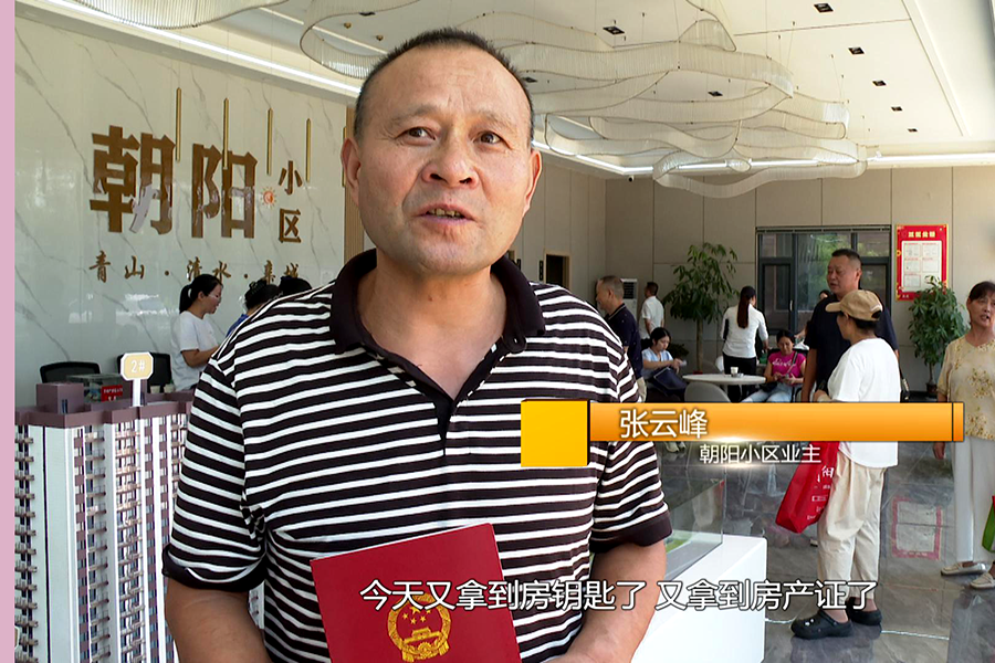 朝阳小区业主 张云峰:之前办房产证要跑很多地方,要提供很多材料,没想到今天在这里办好很简单,今天又拿到房钥匙了,又拿到房产证了,心里也安心了。