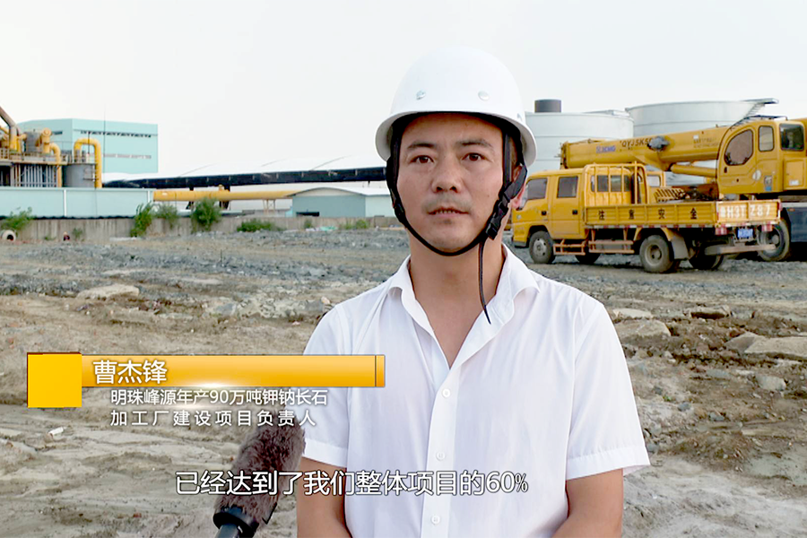 明珠峰源年产90万吨钾钠长石加工厂建设项目负责人 曹杰锋:目前按照我们施工进度,已经达到了整体项目的60%,预计在10月底要进行投试产,刷新整个浠水的投资建设周期。