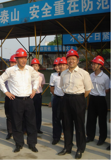 孙文杰(左)与中建五局原董事长鲁贵卿(右)在项目工地检查