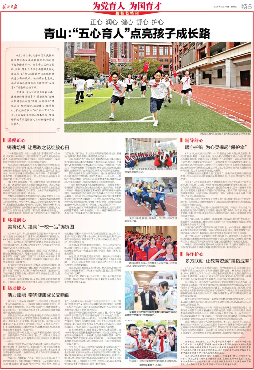 未来,青山教育将始终锚定“为党育人、为国育才”初心,持续深耕“五心育人”沃土,在守正创新中厚植教育温度,在协同发力中拓宽育人维度,用心点亮每个孩子的成长之路,以更昂扬的姿态书写人民满意的教育新篇章,为培养出更多德智体美劳全面发展的社会主义建设者和接班人贡献青山力量。