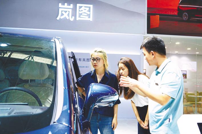 9月12日,2025襄阳国际车展暨万人汽车团购会在汉江流域国际博览中心盛大开展。作为汉江流域地区首个国际化大型车展,此次展览面积超过3万平方米,超50家知名汽车品牌集中亮相,涵盖新能源汽车、智能网联汽车、传统燃油车等领域。图为东风岚图汽车展区,销售人员介绍车型信息。 (湖北日报全媒记者 周升蕾 赵怡然 通讯员 龚倩 摄)