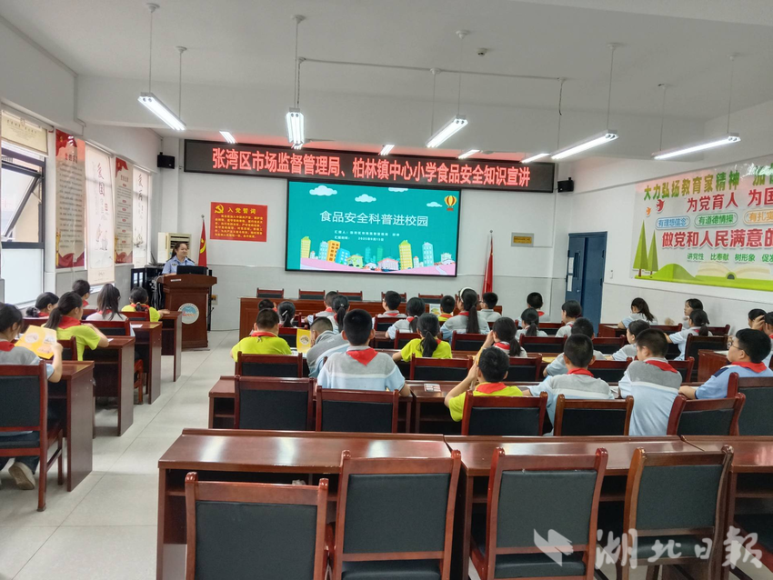 湖北日报客户端讯(通讯员全照刚 邱婷)为切实提升青少年食品安全意识,培养健康科学的饮食习惯,9月15日,在全国食品安全宣传周及开学季期间,十堰市张湾区市场监督管理局柏林所执法人员走进张湾区柏林镇中心小学,开展了一场主题鲜明、内容丰富的“食品安全科普进校园”宣传教育活动。