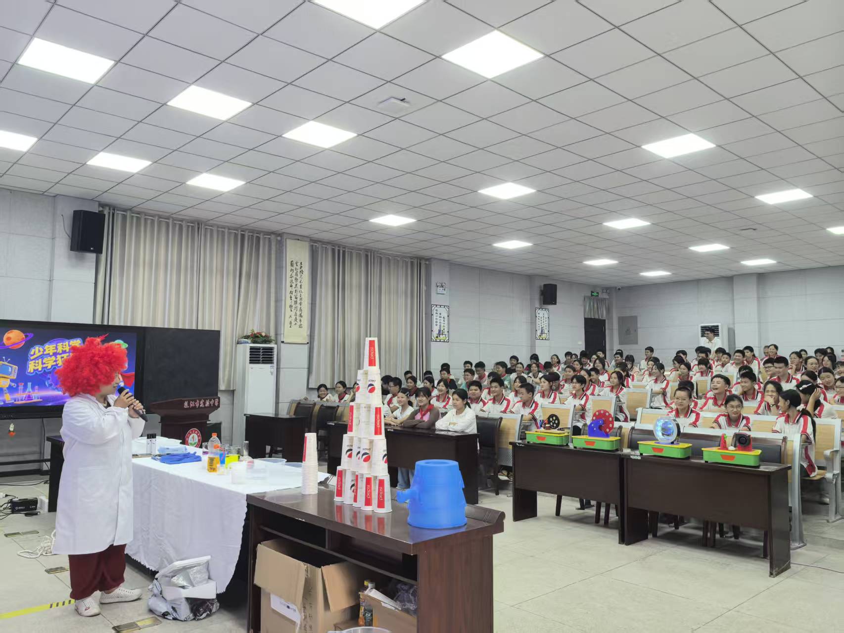 下午,科学秀走进枝江市实验中学。面对认知更深入的学生,科普环节在趣味基础上增加“探究性互动”,引导学生从“看热闹”转向“探原理”,让科学探索更有深度。