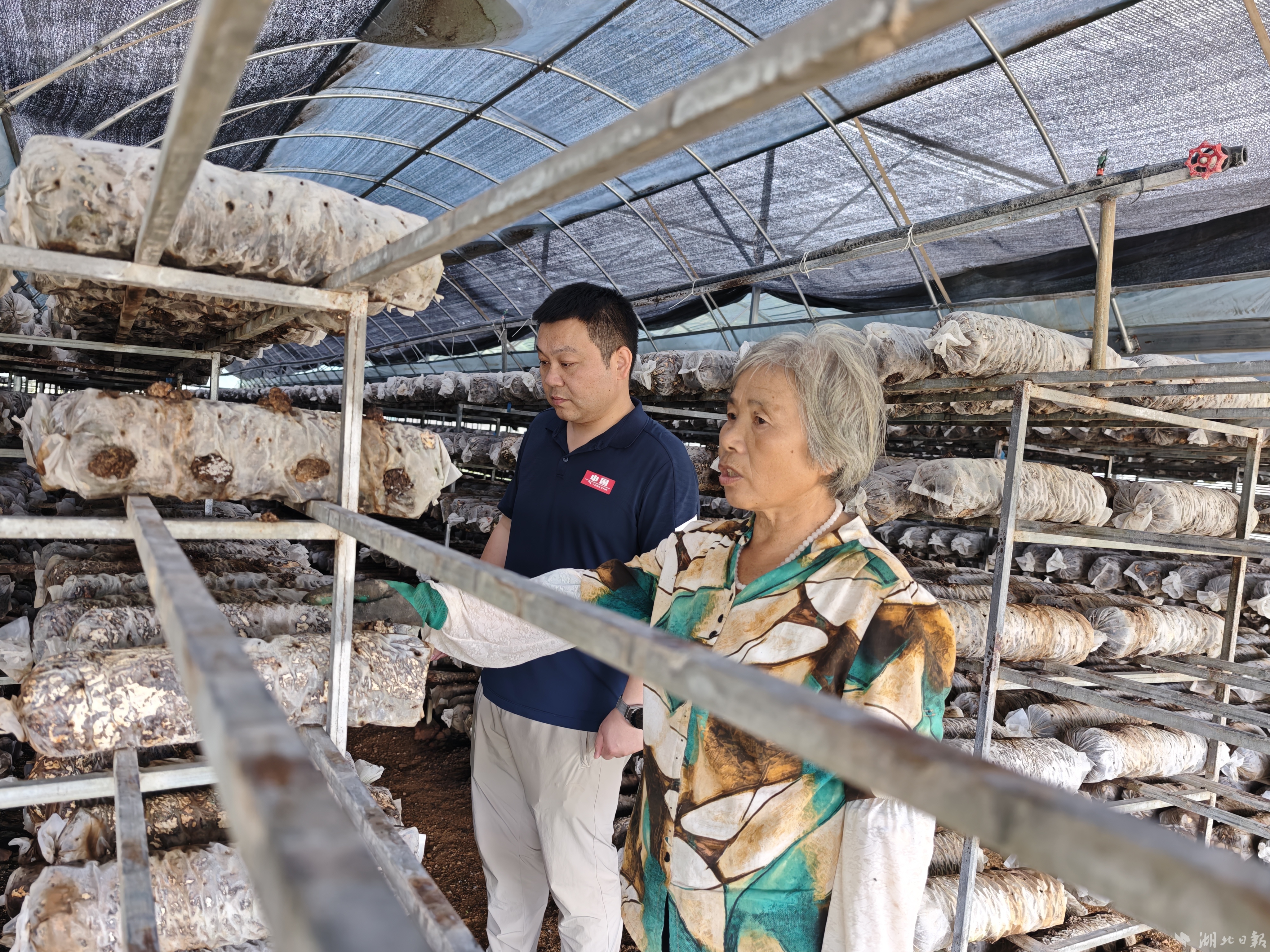 殷店镇年轻干部与菇农交流香菇种植经验。(通讯员供图)