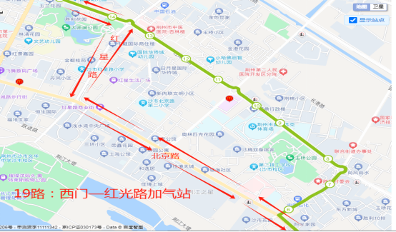 红光路—北京路—红星路—江津路—荆南路—屈原路—荆中路;