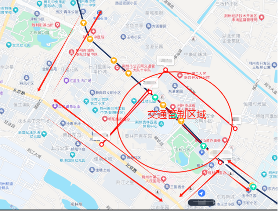 东岳路-津乡大道-塔桥路-北京路-红门路-长港路-豉湖路-荆沙大道-燎原路-西干渠路;