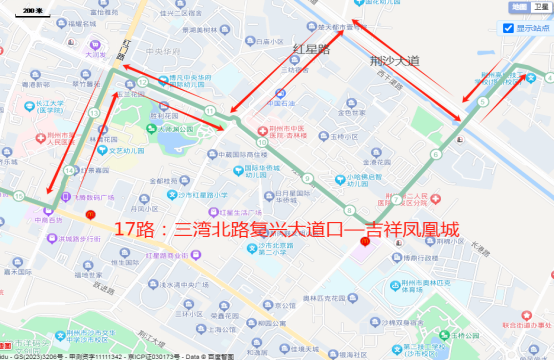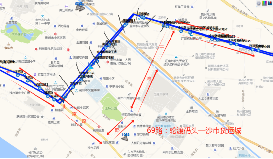 三湾路—沙岑路—豉湖路—荆沙大道—红星路—红门路—北京路—江汉南路—沿江路—南湖路—学苑路—屈原南路;