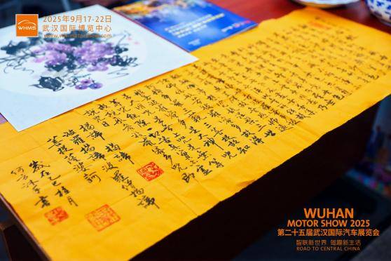 湖北省毛泽东书法艺术研究会理事、书法家何方先生,潜心书画创作四十余年,擅长楷书与草书,其作品融合了时代精神与个人情怀。抗疫期间,何先生曾创作并赠予165幅作品致敬驰援武汉的医疗队。车展现场,他即席挥毫,引来众多观众驻足欣赏。