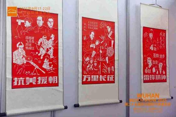 武汉剪纸艺术第五代传承人、湖北省工艺美术大师葛海先生,展出了《奥运风姿系列》《包公图两袖清风》《复兴大武汉》等多幅获奖作品。葛先生剪纸技艺精湛,其作品曾被赠予联合国官员及多国友人。同时他还在多所学校担任指导老师,致力于剪纸艺术的教育、传承与推广。