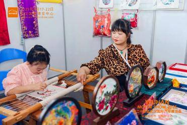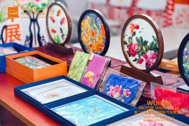 汉绣非遗传承人杜先姣女士带来了一系列精美的双面绣台屏、汉绣领带、钱包及笔记本等文创作品。杜女士从事汉绣二十余年,其作品《大德中国》《守望》曾获市级文艺比赛一等奖和三等奖,《满园春色》被北京博物馆收藏。杜女士不仅以精湛技艺传承汉绣,更带动300余名残疾人实现创业与就业,使汉绣成为他们自立自强、成就价值的重要途径。