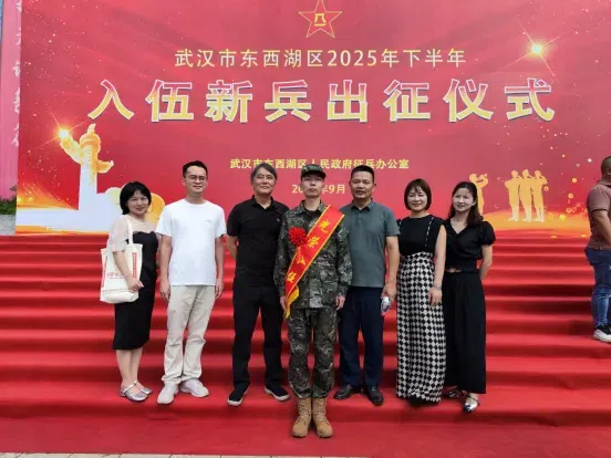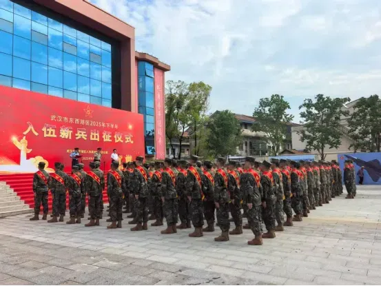 “携梦出征赴沙场!”2025年9月15日上午,武汉市东西湖区柏泉街道游客中心前红旗飘扬、掌声阵阵,东西湖区2025年下半年秋季送兵活动在此隆重举行。伴随着激昂的《中国人民解放军军歌》旋律,柏泉街道1名经政治审查、体格检查、综合素质考核“三重把关”的适龄青年身着崭新军装,与他的一百多名战友一起,胸戴“光荣入伍”红花,在区人武部代表、亲友、群众的祝福目光中,正式开启军旅生涯——这一时刻,也标志着柏泉街道2025年下半年征兵任务圆满收官。